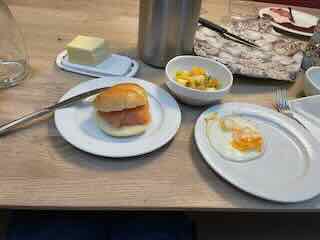Am 29. März‘ 25 brunchte ich ein Lachs-Semmel, ein Spiegelei und ein Fruchtsalat.