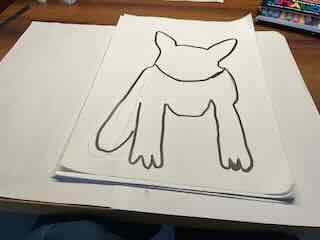 Nach dem Lunch übertrug ich die Weihnachtszeichnung mit Durchschlag-Papier auf ein Sperrholz.