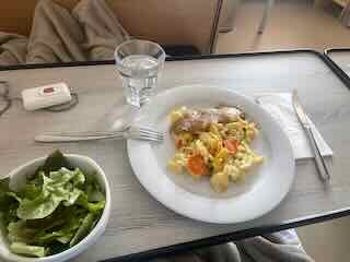 Das Mittagessen wurde mir wieder zum Bett gebracht.