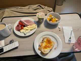 Den Brunch ass ich wegen des Dekubitus wieder im Bett.
