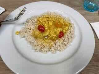 Zu Abend hatte ich Reis-Casimir und zum Dessert Lotus Cheescake.
